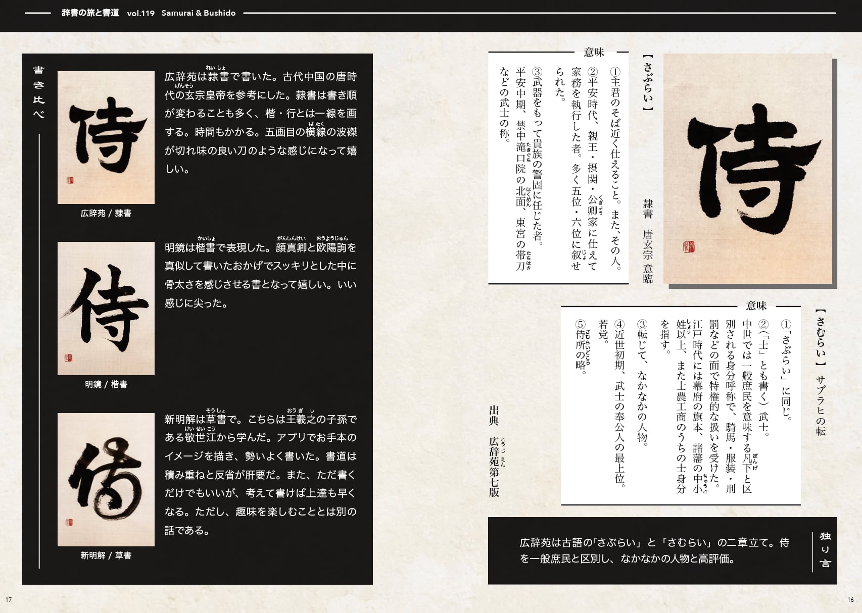 現在は辞書の旅特集と銘打って新明解国語辞典、明鏡国語辞典、広辞苑という3冊の辞書の意味を読んだ直後に揮毫(きごう・筆で書くこと)し、真実の意味を探ろうという酔狂な企画を行っています。